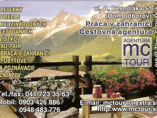 Agentúra MC Tour V prípade záujmu píšte na mctour@nextra.sk , prezvoňte nám na 0903 426 886, 0948 483 776 zavoláme vám späť