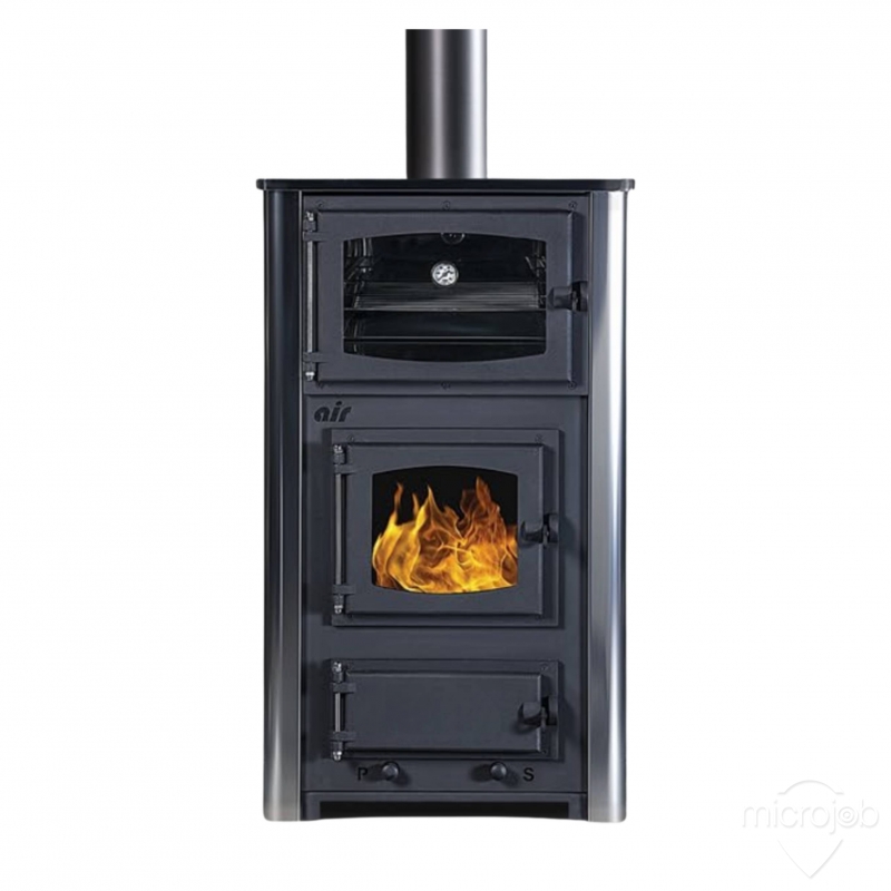 - Multifunkčnosť: Umožňuje nielen rýchle vykurovanie miestnosti, ale aj varenie na liatinovej platni a pečenie v integrovanej rúre.