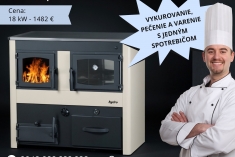 - Rýchle varenie a pečenie: Priestranná nerezová rúra a liatinová varná doska umožňujú prípravu jedál priamo počas vykurovania.