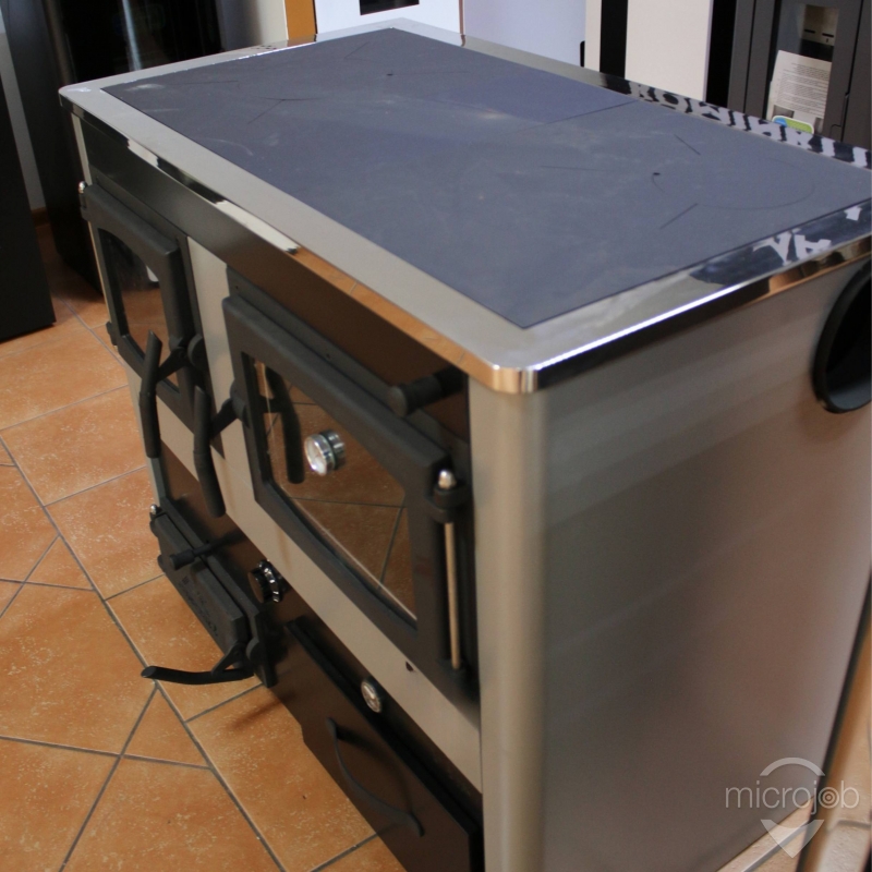 - Rýchle varenie a pečenie: Priestranná nerezová rúra a liatinová varná doska umožňujú prípravu jedál priamo počas vykurovania.