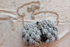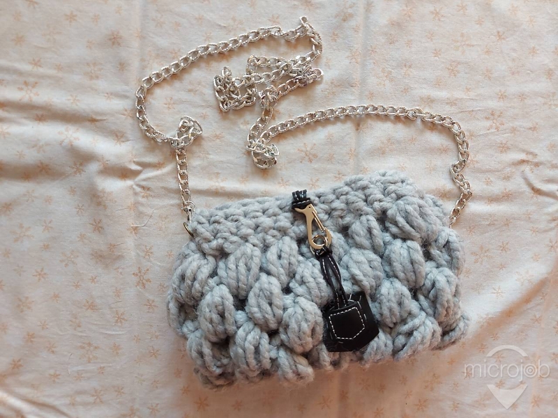 hačkovaná kabelka na rameno. Dĺzka retiazky je 120 cm. Do kabelky sa zmesti mobil, peňaženka, klúče. Taštička je futrovana.
